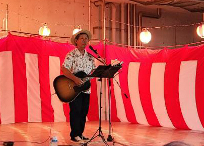 お祭りでは、久しぶりの「豆電球」のライブと、同じく久しぶりの「しばっち」の登場で、大いに盛り上がりました。
