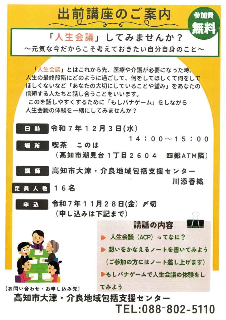 【お知らせ】出前講座「人生会議」してみませんか?